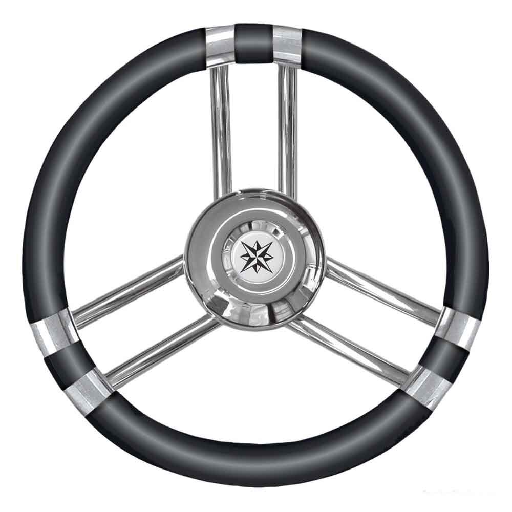 The steering wheel is made of soft black polyurethane with stainless steel spokes and hub.